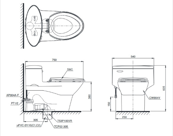 Những thông số kỹ thuật của bồn cầu TOTO 1 khối MS904T8
