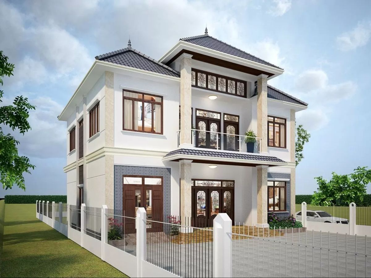 Mái Thái là kiểu mái quen thuộc và rất phù hợp với khí hậu Việt Nam, nổi bật với sự kết hợp hài hòa giữa vẻ đẹp thanh thoát và độ bền vững. Thiết kế mái dốc không chỉ giúp thoát nước nhanh, hạn chế tình trạng đọng nước khi mưa lớn mà còn tạo điểm nhấn thẩm mỹ cho cả căn nhà.