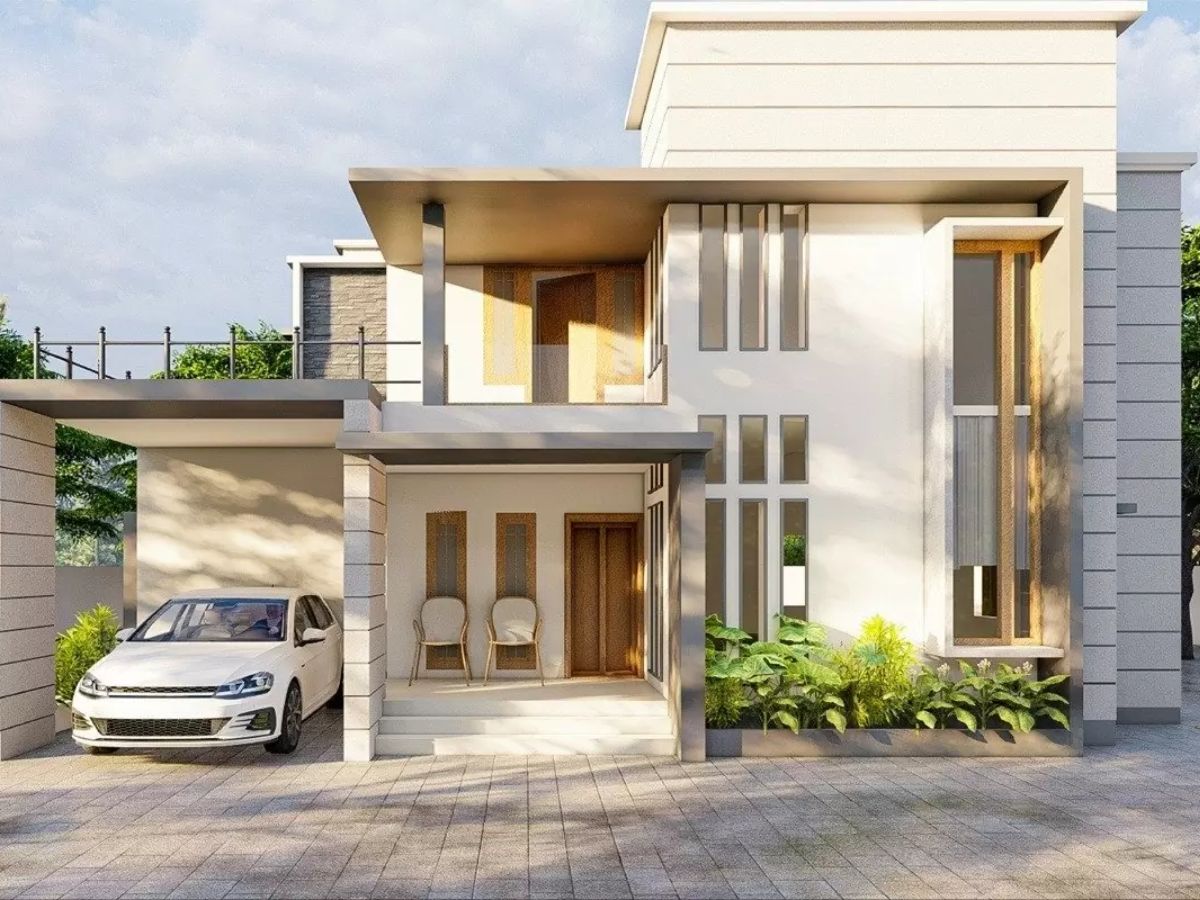 Nhà mái bằng mang phong cách hiện đại, phù hợp với những gia đình trẻ hoặc những ai yêu thích sự tối giản. Thiết kế này thường sử dụng các hình khối mạnh mẽ, kết hợp vật liệu như kính, bê tông và kim loại để tạo nên vẻ ngoài trẻ trung.