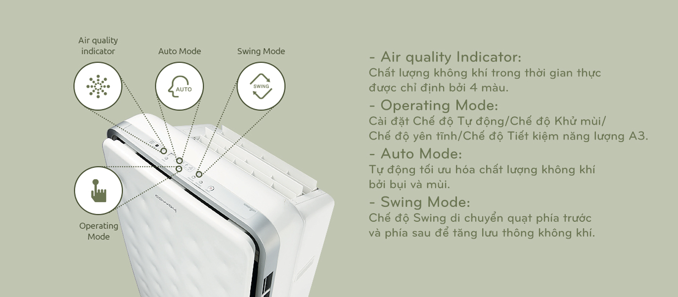 Để đáp ứng nhu cầu của người dùng, Máy lọc không khí Coway TUBA (AP-3008FH) được Coway thiết kế rất nhiều chế độ.
