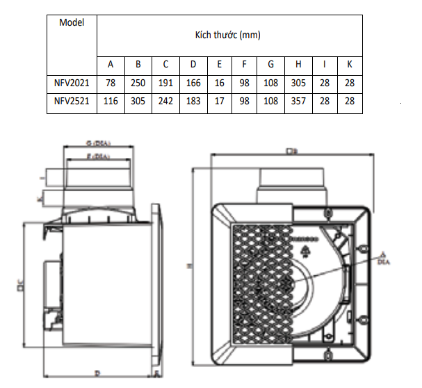Thông số của quạt hút NANOCO NFV2521: