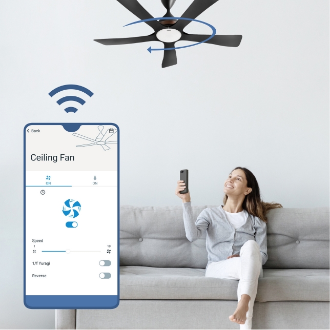 Sản phẩm quạt F-60DGN điều khiển bằng hai cách: điều khiển từ xa bằng điều khiển và điều khiển từ xa qua app điện thoại kết nối wifi.