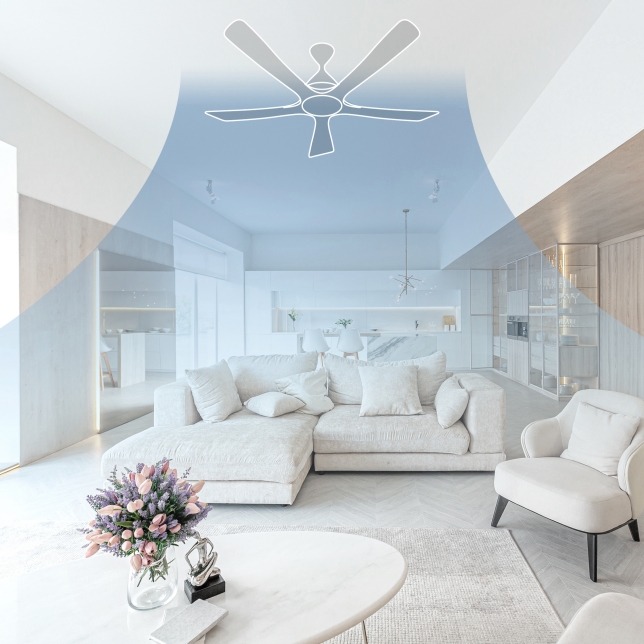 Quạt trần không chỉ lưu thông không khí và cân bằng nhiệt trong phòng, mà còn lan tỏa làn gió nhẹ từ trần, hiệu quả trong việc giảm mức nhiệt độ cảm nhận. Nhiệt độ cảm nhận có thể chênh lệch xấp xỉ 3°C khi có gió nhẹ so với khi không có gió nhẹ